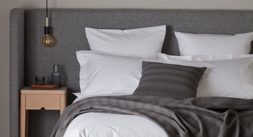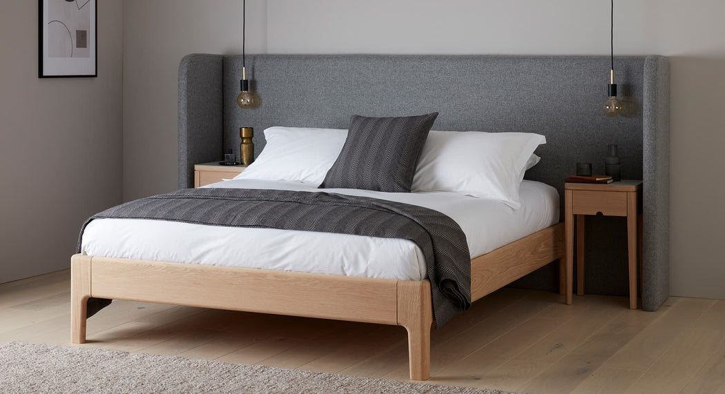 The generous winged headboard of the Eton creates a dramatic statement, while the clean geometric lines retain simplicity.