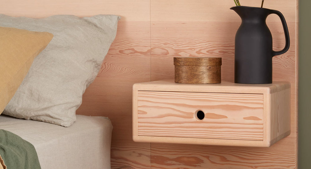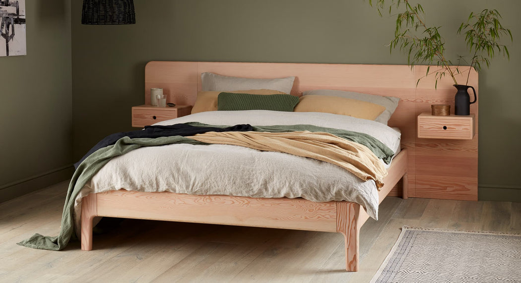 Made from solid Douglas Fir, the Henry bed with headboard and side tables is a devastating centrepiece in any bedroom.